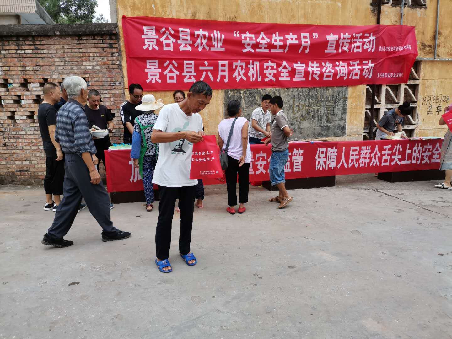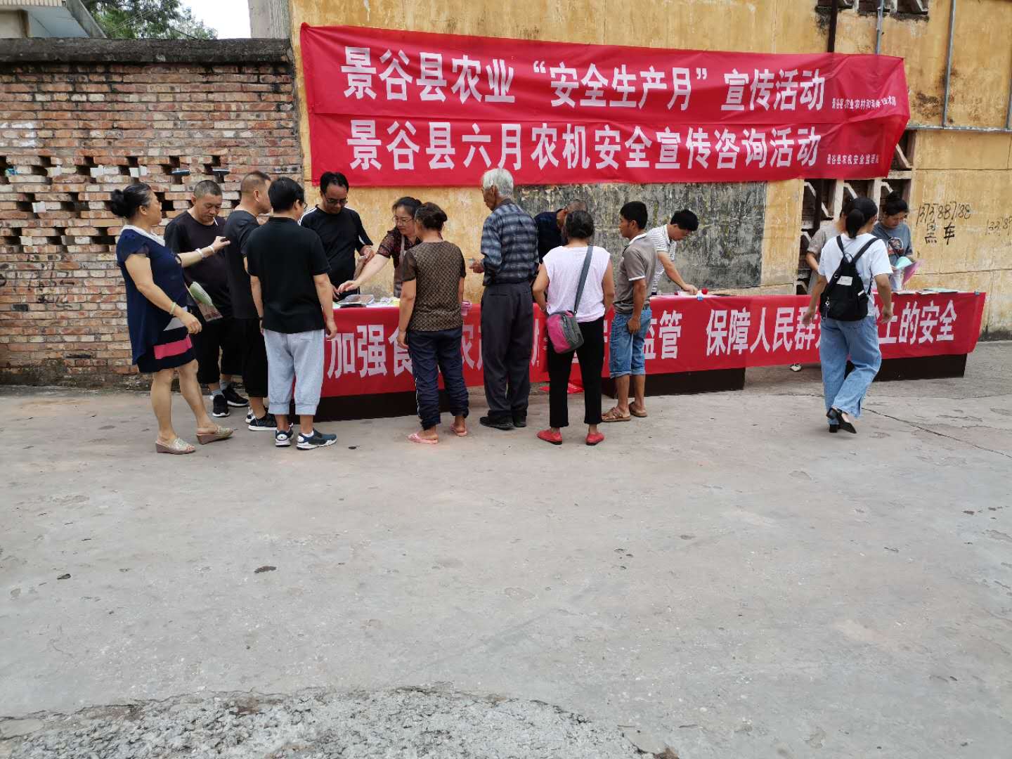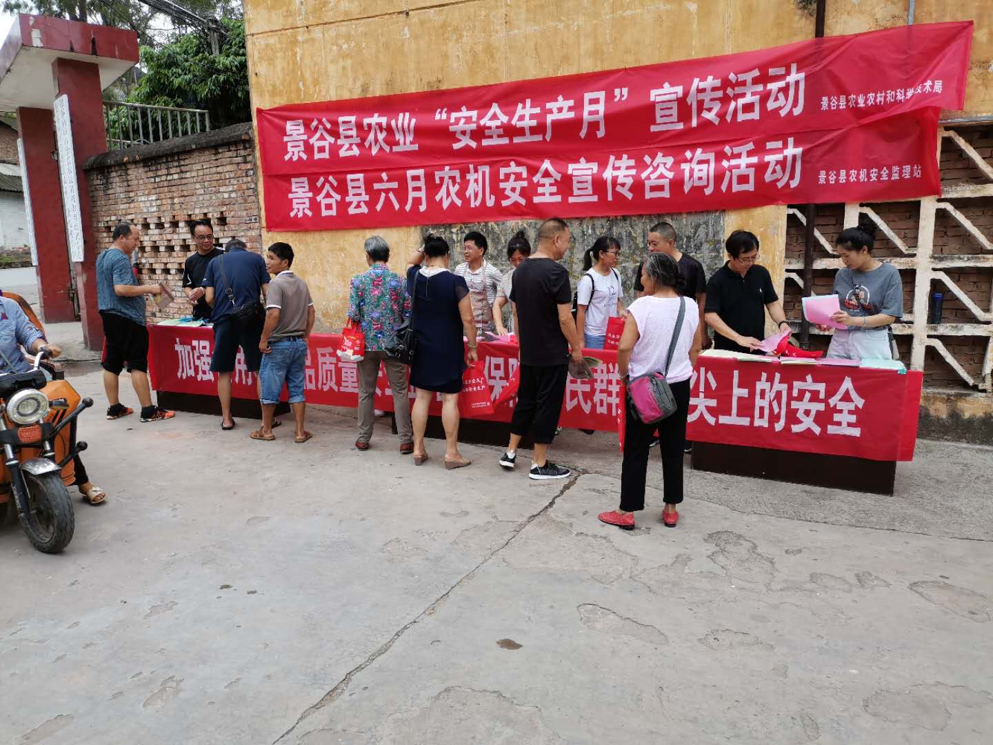 在活动现场,设立了宣传咨询台1个、悬挂宣传横幅3条,向群众发放《致广大农机手的一封信》、《农机安全生产宣传主题》、《微耕机安全操作规程》、《农产品质量安全宣传材料》《农药安全合理使用知识》、《病死畜禽无害化处理责任告知书》和《水产品质量安全管理宣传材料》等农业行业安全生产宣传资料共计1500余份,现场解答了农民群众关心的农业安全生产方面问题25个。