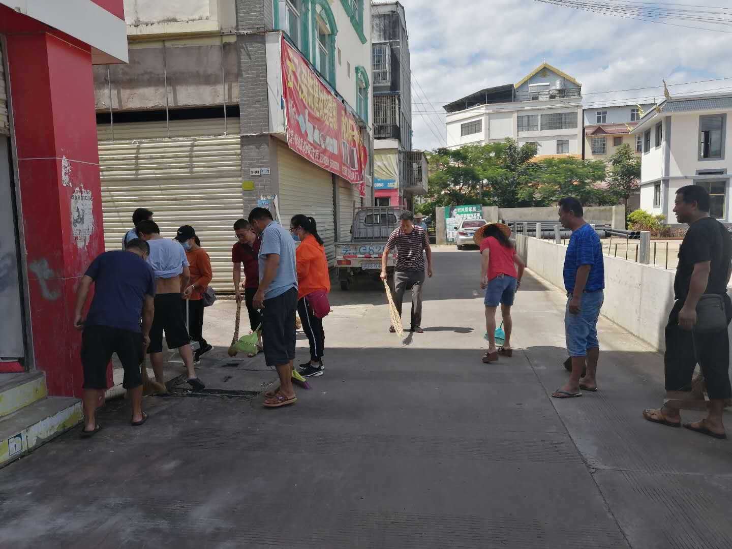 干部职工在包保区江东建材城开展大扫除活动