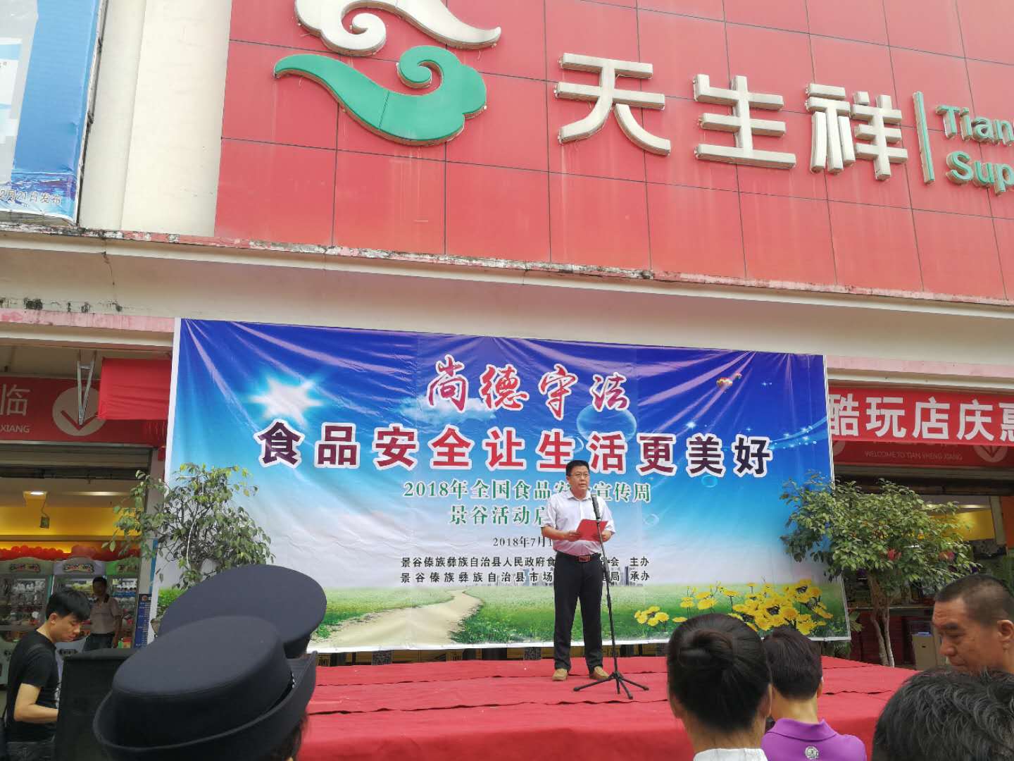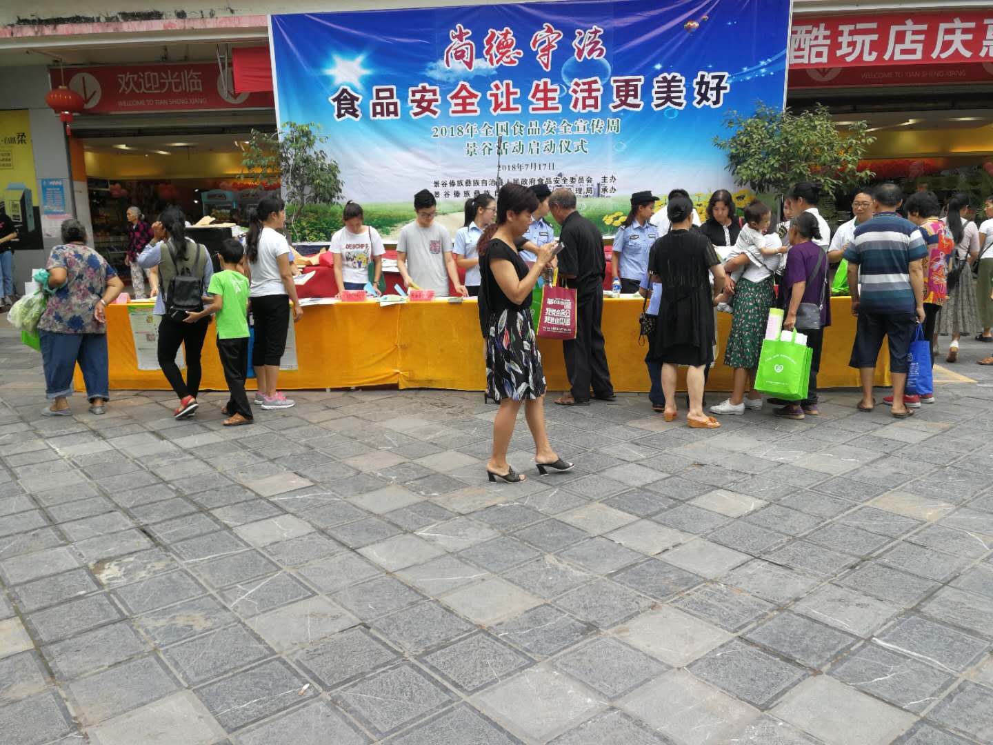 7月17日上午,由自治县人民政府食品安全委员会主办、自治县市场监督管理局承办的以“尚德守法,食品安全让生活更美好”为主题的2018年365beat中文版_365防伪码查询系统_365bet最稳定网址县食品安全宣传周活动启动仪式在天生祥广场举行。