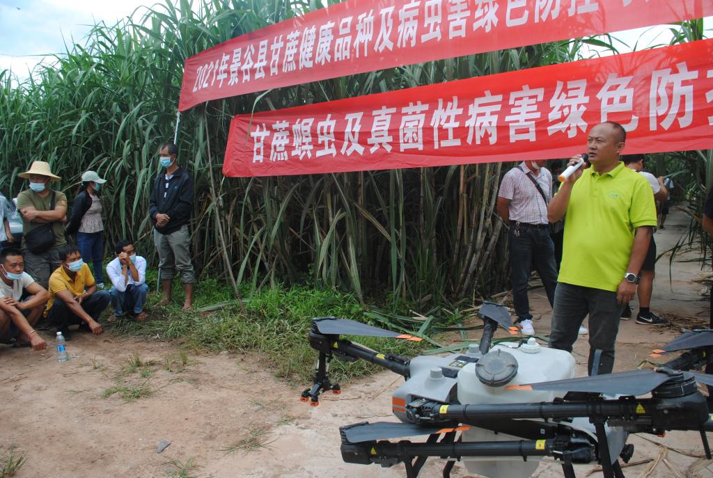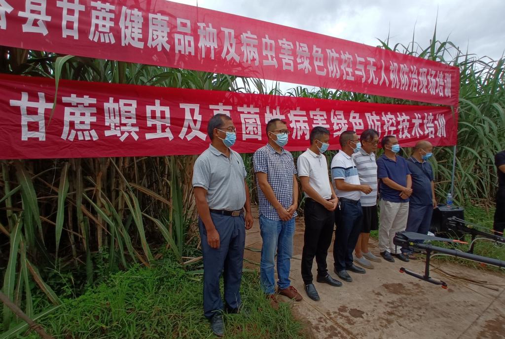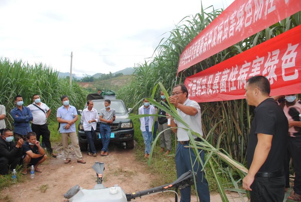 为切实抓好甘蔗病虫害防治,确保甘蔗增产增收。近日,云南省农业科学院甘蔗研究所陈学宽研究员、国家糖料产业技术体系开远综合试验站赵俊研究员、甘蔗所植保专家尹炯、罗志明副研究员等一行8人受邀赴365beat中文版_365防伪码查询系统_365bet最稳定网址蔗区开展示范区甘蔗健康良种配套技术应用推广、病虫害绿色防控和无人机防治现场培训暨甘蔗螟虫与真菌性病害绿色防控技术培训。