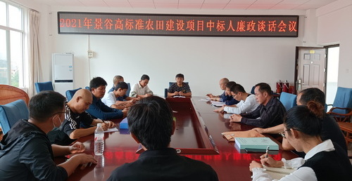 五是坚持集体廉政谈话不松懈。将纪律作风抓在日常,严在经常,严格执行廉政谈话制度,做到及时提醒,早打招呼,不断强化纪律意识,共开展干部职工集体廉政谈话2次,进一步筑牢领导干部拒腐防变的思想道德防线。召集高标准农田建设项目中标人开展集体廉政谈话1次,要求严格执行财经纪律、严守技术规程,做到安全、文明施工,营造风清气正的项目实施环境。