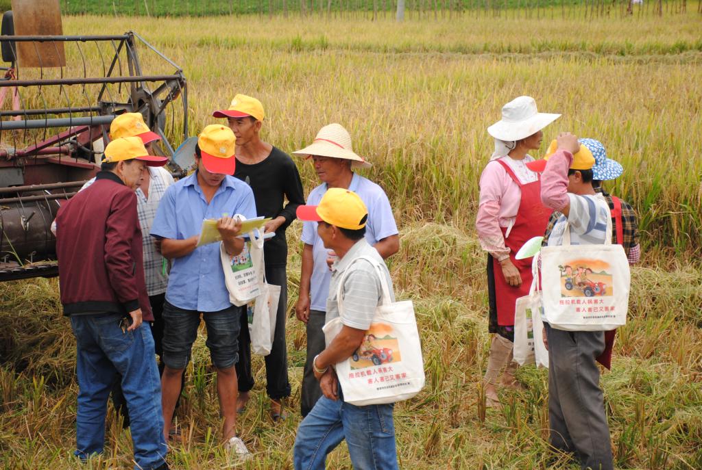 培训会现场,全体参训人员观摩了烟后水稻的机械化收获过程;县农科局农业机械化管理股(安全办)、县农业机械安全监理站负责人分别围绕粮食机械收获安全规范化操作注意事项、机收减损技术措施等内容进行了细致的讲解,并现场解答了农机手们的提问。通过机收示范、现场观摩、田间实地沟通和交流,有效增强了培训的效果。参训学员纷纷表示,通过培训,明白了造成机收过程中损失的原因和环节,也基本掌握了机收减损的相关技术措施,今后,会将所学更好的运用到实际生产实践中,实现节能增效,颗粒归仓。