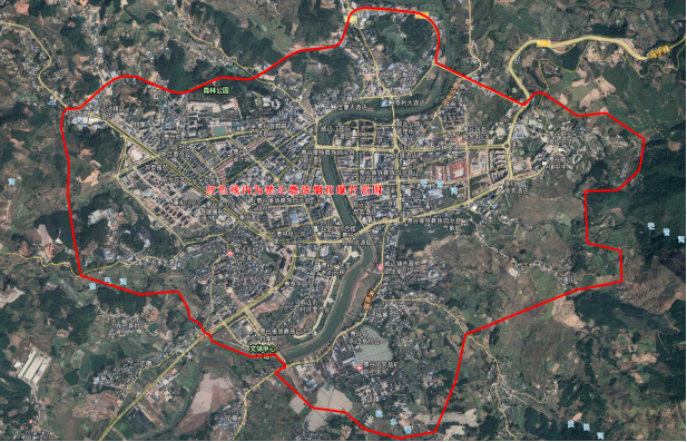东起景临公路过境线与215国道(景宁公路)交叉处—老松香厂—叶家山—土锅寨—凤岗盐矿—林纸路与勐卧大桥交界处;南起林纸路与勐卧大桥交界处—文体中心—大寨—荣昌驾校;西起荣昌驾校—响水路与景临公路过境线交叉处;北起响水路与景临公路过境线交叉处沿景临公路过境线—景临公路过境线与215国道(景宁公路)交叉处。
