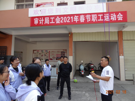 开年之初,为激发审计局全局职工蓬勃向上的精神干事面貌,2月18日自治县审计局党组、党支部和工青妇共同组织开展了2021年全体审计干部职工趣味运动会。在气排球比赛,盲人敲铓趣味项目过程中全局干部职工激情洋溢,气场朗朗,积极拼搏,赛出成绩,赛出风格。